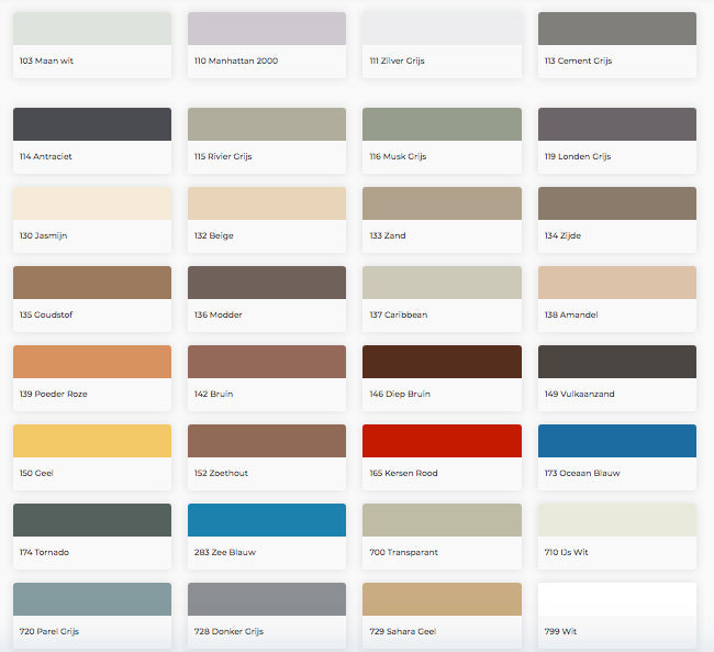 Kerapoxy Design is leverbaar in 32 kleuren.